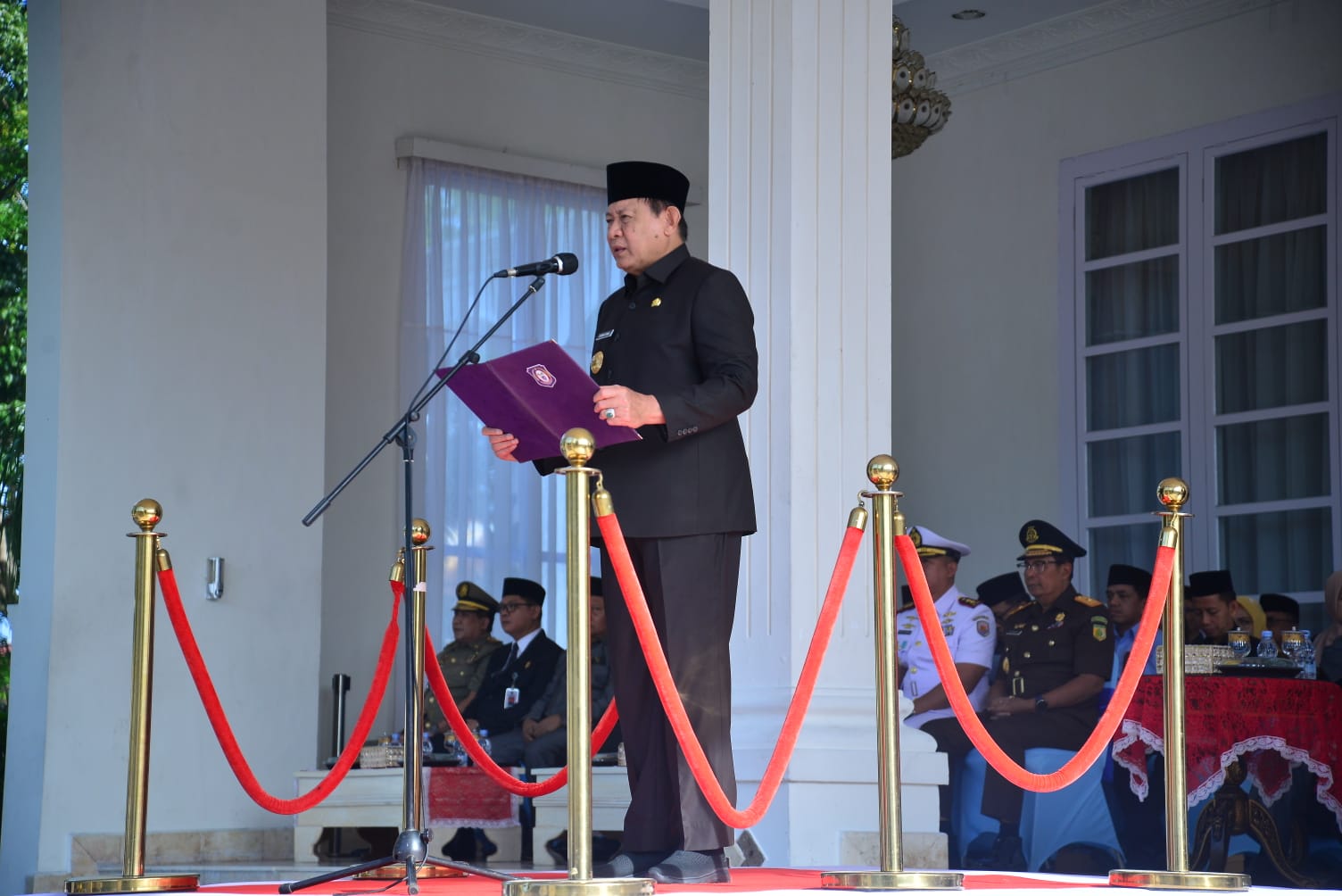 Kota Gorontalo, Kominfotik – Gubernur Gusnar Ismail bertindak sebagai Inspektur upacara pada peringatan hari kesaktian Pancasila tingkat provinsi Gorontalo di halaman rumah jabatan Gubernur, Rabu (1/10/2025). Upacara turut dihadiri Wakil Gubernur Idah Syahidah Rusli Habibie bersama jajaran Forkopimda dan pimpinan OPD Pemprov.