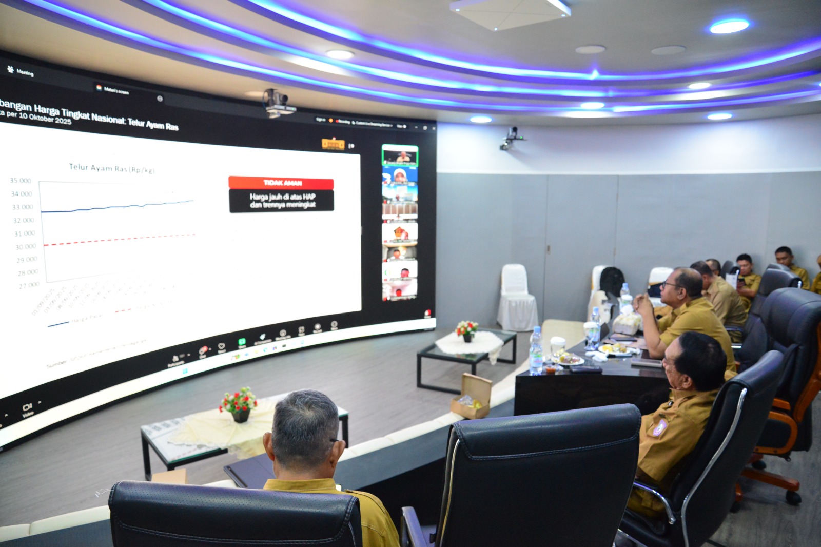 Rapat inflasi daerah dirangkaikan dengan pembahasan kebersihan dan kesehatan dalam pengolahan hewan ternak untuk pangan dengan evaluasi dukungan pemerintah daerah dalam program 3 juta rumah secara virtual, diikuti Sekretaris Daerah Provinsi Gorontalo Sofian Ibrahim, di Ruang Oval, Gubernuran, Senin (13/9/2025). (Foto : Mila