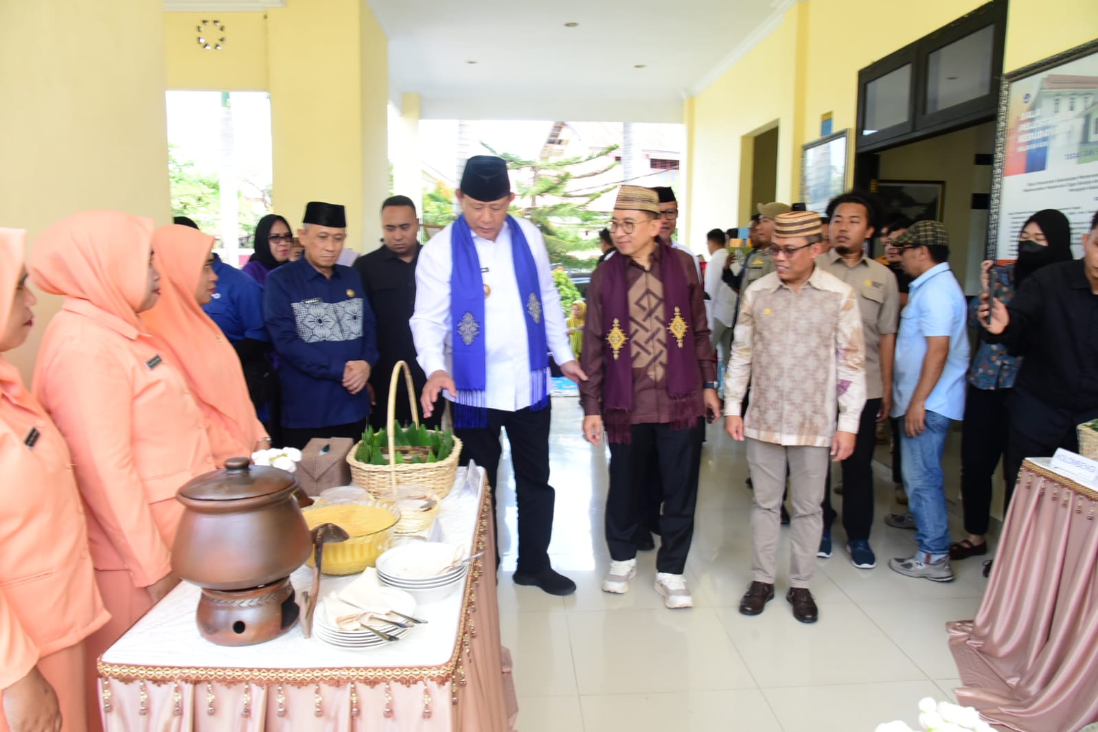 KOTA GORONTALO, Kominfotik – Gubernur Gorontalo Gusnar Ismail memperkenalkan sejumlah kuliner khas Gorontalo kepada Menteri Kebudayaan Fadli Zon saat meninjau kantor Balai Pelestarian Kebudayaan, Rabu (15/10/2025). Sajian kuliner khas daerah disiapkan oleh pengurus dan anggota Dharma Wanita Persatuan Balai Pelestarian Kebudayaan Gorontalo.