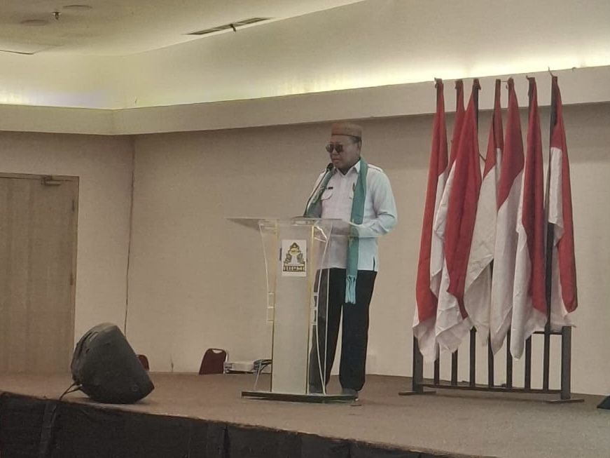 Staf Ahli Gubernur Bidang Kemasyarakatan dan SDM, Yosef P. Koton, saat membuka Rakerda dan Diklatda BPD HIPMI Gorontalo masa bhakti 2025–2028 di Fox Hotel Kota Gorontalo, Rabu (15/10/2025).