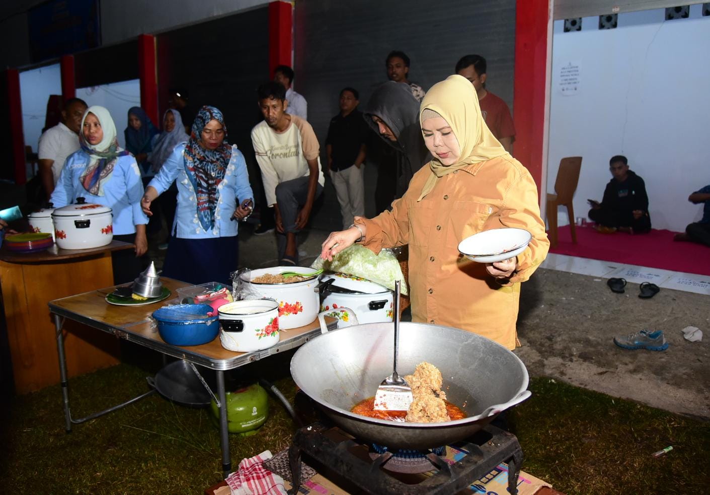 Menariknya, dalam kunjungan itu Idah tidak hanya datang melihat dan memerintah. Ia turun langsung ke dapur panitia, untuk memasak nasi goreng yang akan dinikmati oleh para relawan yang bekerja hingga larut malam.
