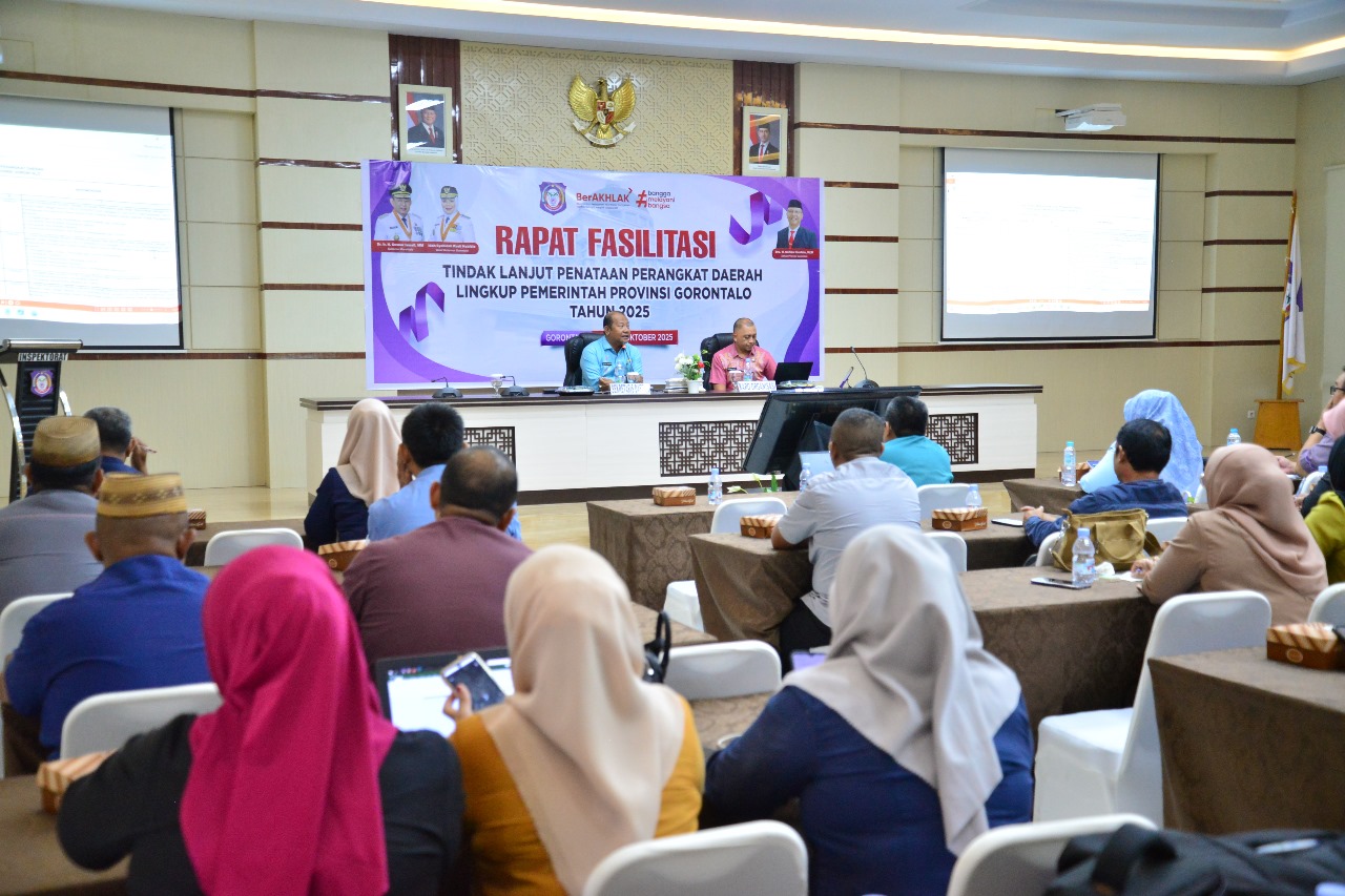 Hal itu disampaikannya saat membuka rapat fasilitasi tindak lanjut penataan perangkat daerah di Kantor Inspektorat Provinsi Gorontalo, Kamis (23/10/2025). Kegiatan ini dihadiri oleh perwakilan dari BKD, Biro Organisasi, dan perangkat daerah terkait.
