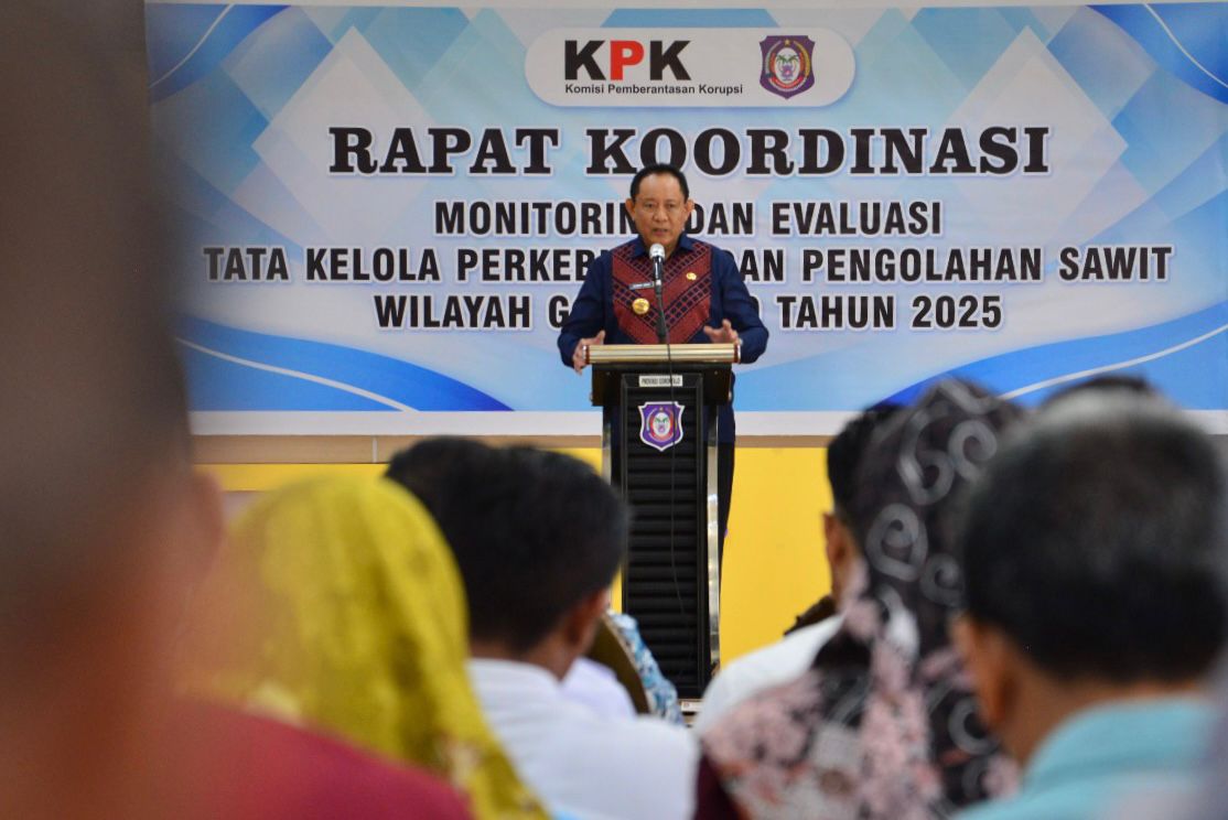 Kota Gorontalo, Kominfotik – Komisi Pemberantasan Korupsi (KPK) mendorong Pemerintah Provinsi Gorontalo untuk memperbaiki tata kelola data dan memperkuat pengawasan sektor perkebunan kelapa sawit. Hal itu disampaikan Kasatgas Koordinasi dan Supervisi Pencegahan (Korpsugah) Wilayah IV KPK Tri Budi Rochmanto, pada rapat koordinasi di Aula Rumah Jabatan Gubernur, Kamis (13/11/2025).