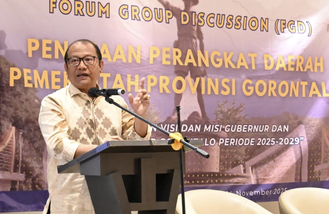 Jakarta, Kominfotik – Pemerintah Provinsi Gorontalo mempercepat proses penataan Struktur Organisasi dan Tata Kerja (SOTK) untuk menyelaraskan struktur birokrasi dengan visi dan misi kepala daerah periode 2025–2029. Upaya tersebut dibahas dalam Forum Group Discussion (FGD) Penataan Perangkat Daerah yang berlangsung di Hotel Orchardz, Jakarta Pusat, Jumat (14/11/2025).