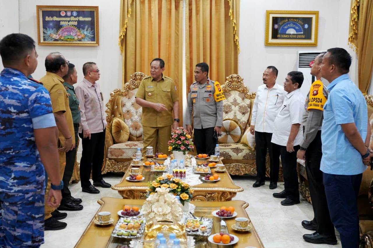 Gubernur Gorontalo Gusnar Ismail berbincang dengan unsur Forkopimda usai rapat di rumah jabatan gubernur, Selasa (25/11/2025). (Foto : Valen)
