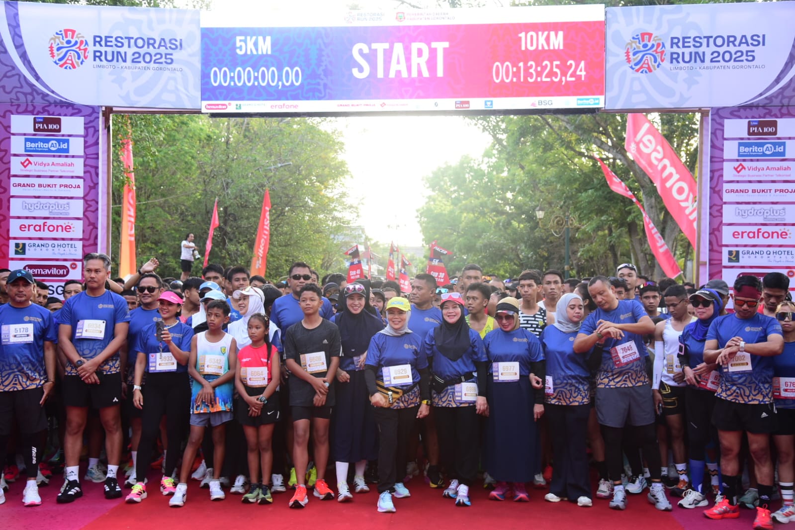 Kegiatan Restorasi Run mengambil titik start di depan Rumah Jabatan Bupati Gorontalo, Limboto. Ajang lari ini semakin istimewa dengan kehadiran artis dan pelari nasional Nirina Zubir beserta suaminya, yang turut memberikan semangat bagi para peserta.