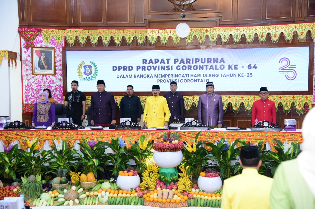 Kota Gorontalo, Kominfotik – Gubernur Gorontalo Gusnar Ismail menyampaikan refleksi capaian pembangunan daerah pada Rapat Paripurna HUT ke-25 Provinsi Gorontalo, Jumat (5/12/2025). Ia menegaskan momentum ini sebagai komitmen memperkuat arah pembangunan daerah.