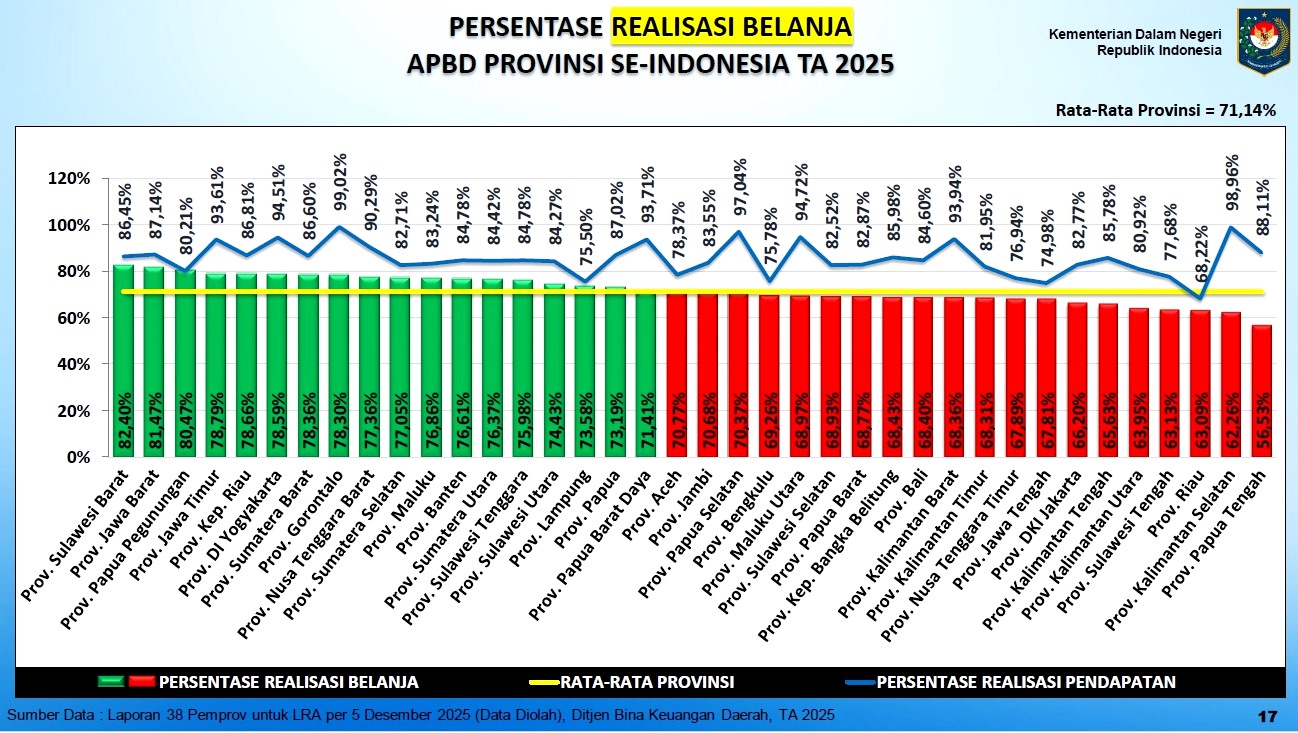 GORONTALO, Kominfotik – Pemerintah Provinsi Gorontalo menunjukkan kinerja keuangan yang luar biasa di bawah kepemimpinan Gubernur Gusnar Ismail dan Wakil Gubernur Idah Syahidah Rusli Habibie. Hal itu terbukti dengan laporan realisasi anggaran per 5 Desember 2025 yang disampaikan dalam Rapat Monitoring Realisasi Belanja Daerah oleh Kementerian Dalam Negeri, Rabu (10/12/2025).