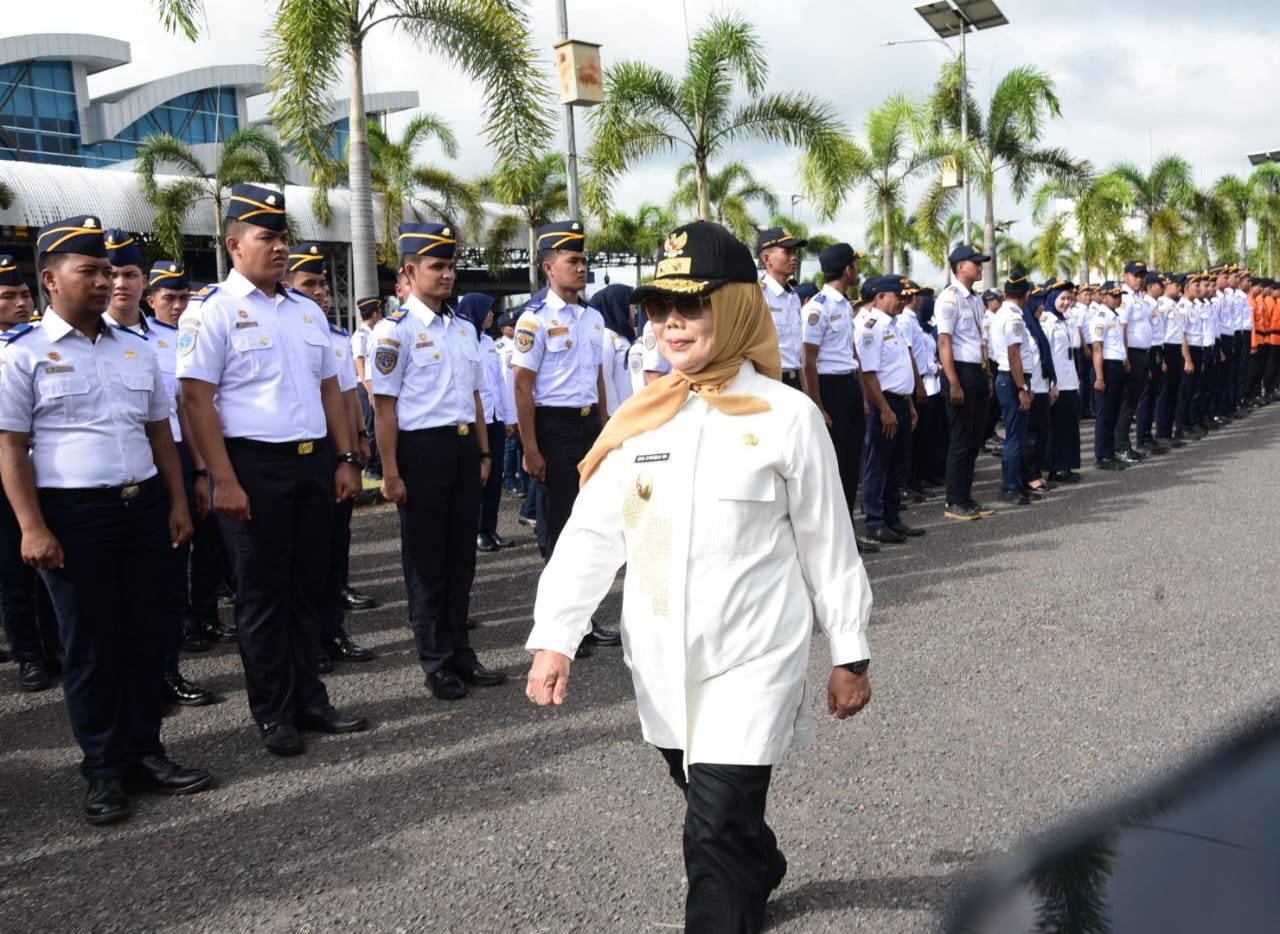 Kabupaten Gorontalo, Kominfotik – Wakil Gubernur Gorontalo Idah Syahidah Rusli Habibie, memimpin apel gelar pasukan sekaligus membuka Posko Terpadu Angkutan Udara Natal 2025 dan Tahun Baru 2026 (Nataru) yang dirangkaikan dengan latihan darurat keamanan penerbangan di Bandara Djalaluddin Gorontalo, Rabu (18/12/2025).