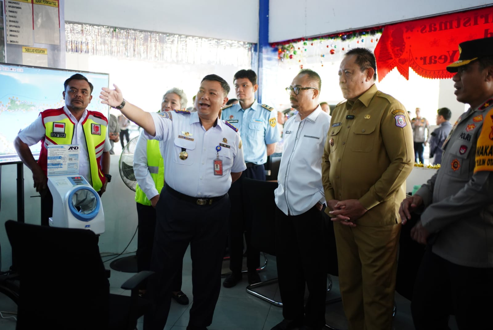 Gubernur Gorontalo Gusnar Ismail meninjau posko terpadu Natal dan tahun baru 2026 di Terminal Bus Isimu dan Bandara Djalaludin, Kabupaten Gorontalo, Senin (22/12/2025). (Foto : Valen)