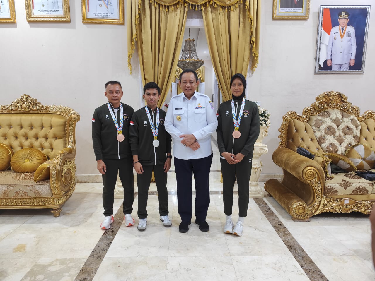 Kota Gorontalo, Kominfotik – Gubernur Gorontalo Gusnar Ismail menyambut kedatangan dua atlet Gorontalo yang mengharumkan nama Indonesia pada ajang Sea Games 2025 di Thailand. Pertemuan dilakukan di rumah jabatan Gubernur didampingi Plt Kadispora Provinsi Aryanto Husain, Pelatih Taekwondo dan Takraw, Serta Pengurus Koni Gorontalo pada Rabu (24/12/2025).