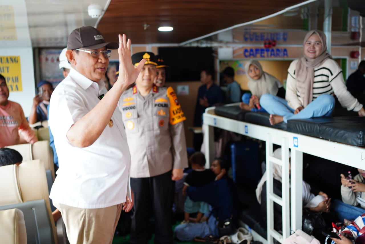Kota Gorontalo, Kominfotik – Gubernur Gorontalo Gusnar Ismail bersama jajaran Forkopimda pastikan keamanan kesiapan keberangkatan kapal yang akan berangkat dari Gorontalo. Hal itu dilakukan saat memantau pos pengamanan dan penumpang kapal KMP. Tuna Tomini di pelabuhan penyeberangan Gorontalo, Jumat (26/12/2025).