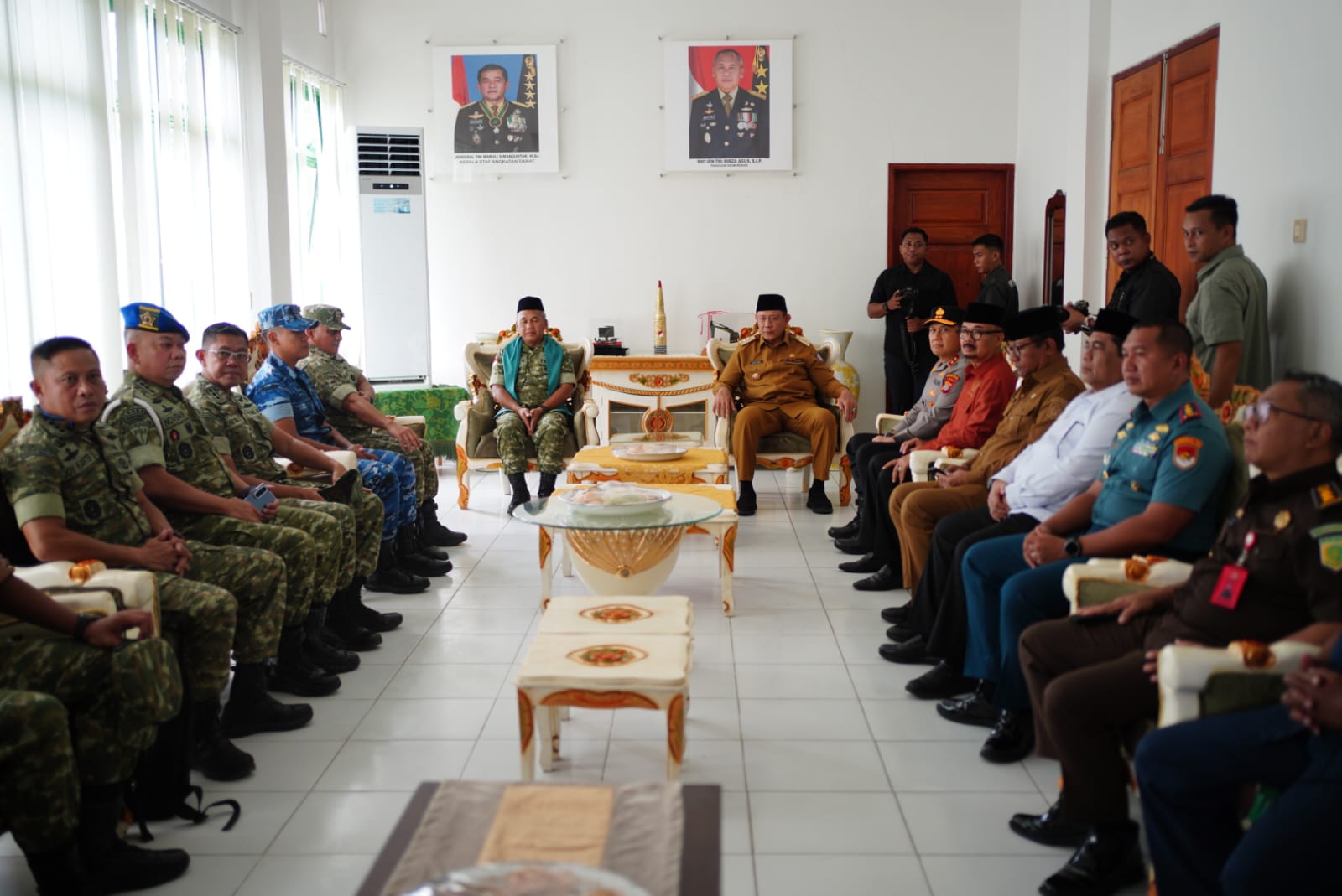 Kab. Gorontalo, Kominfotik – Panglima Kodam (Pangdam) XIII/Merdeka, Mayjen TNI Mirza Agus didampingi Ny. Lely Mirza Ketua Persit Kartika Chandra Kirana Daerah XIII/Merdeka, melakukan kunjungan kerja ke Provinsi Gorontalo, Selasa, (20/1/2026). Kedatangannya di Bumi Serambi Madinah disambut dengan adat Mopotilolo di Korem 133/Nani Wartabone.