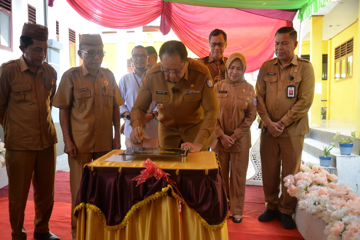 “Pemerintah senantiasa membangun fasilitas sekolah hingga sampai ke tempat ini, jadi sekolah ini terus kita kembangkan sehingga siswa yang berada di sekitar sini bisa kita ajak sehingga mendekatkan pelayanan pemerintah terhadap ketersediaan sekolah” ujar Gusnar.