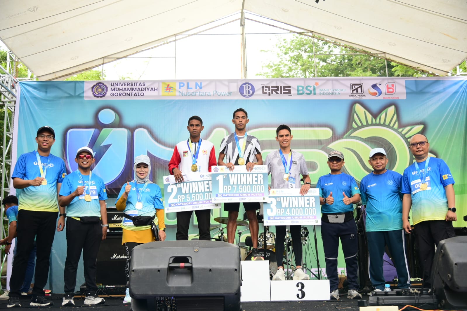 Wagub Idah Syahidah Rusli Habibie bersama para pemenang lomba Fun Run 5K UMGO kategori pria. (Foto – Nova Diskominfotik).