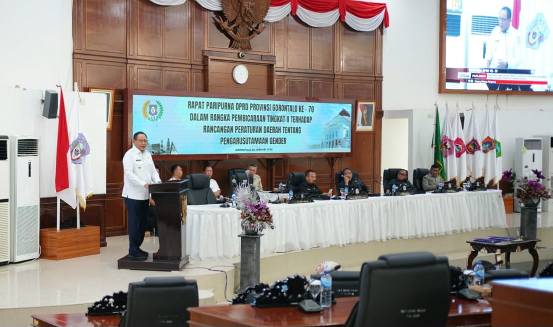 Kota Gorontalo, Kominfotik – DPRD Provinsi Gorontalo bersama Pemerintah Provinsi Gorontalo menyepakati Rancangan Peraturan Daerah tentang Pengarusutamaan Gender untuk ditetapkan menjadi Perda. Kesepakatan tersebut diambil pada Rapat Peripurna ke-70 Pembicaraan Tingkat III di ruang sidang DPRD Provinsi Gorontalo, Rabu (28/1/2025).