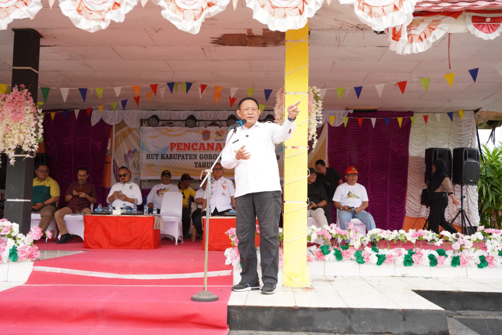 Kab. Gorontalo Utara, Kominfotik – Gubernur Gorontalo Gusnar Ismail mengapresiasi Motabi Kambungu, program unggulan Pemerintah Kabupaten Gorontalo Utara sebagai wujud kehadiran pemerintah di tengah masyarakat. Hal tersebut disampaikannya saat menghadiri Motabi Kambungu Akbar yang dirangkaikan dengan pasar murah dan pencanangan Hari Ulang Tahun ke-19 Gorut yang dipusatkan di Kecamatan Monano, Selasa (17/2/2026).