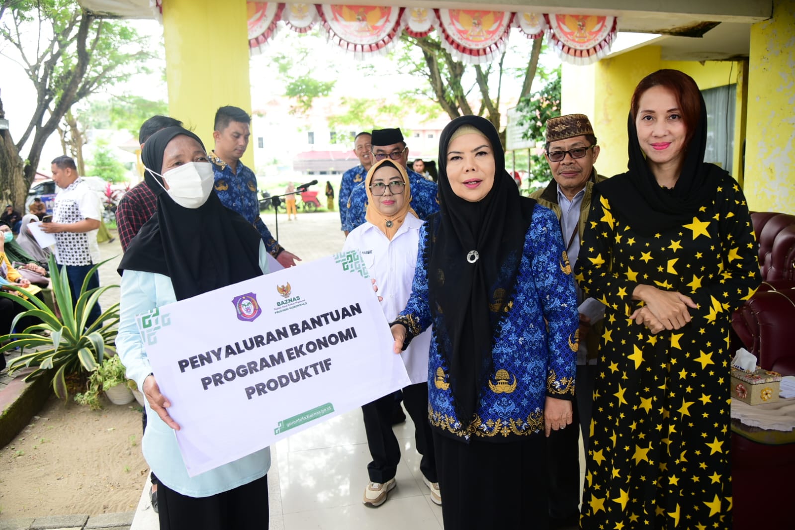 Wakil Gubernur Gorontalo Idah Syahidah Rusli Habibie saat menyerahkan secara simbolis bantuan modal usaha melalui program ekonomi produktif tahap XVI yang dilaksanakan oleh Baznas Provinsi Gorontalo bekerja sama dengan Dinas Koperasi, UMKM, Perindustrian dan Perdagangan (Kumperindag) Provinsi Gorontalo. (Foto – Nova Diskominfotik).