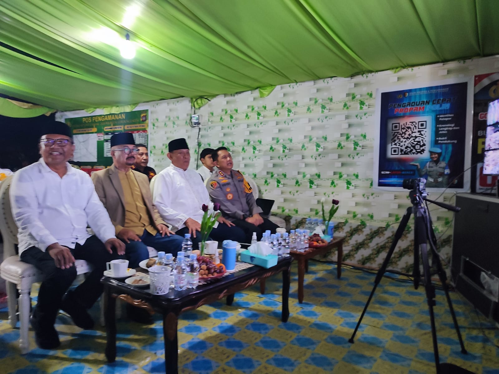Gubernur Gorontalo Gusnar Ismail bersama Kapolda Irjenpol Widodo, Ketua DPRD Thomas Mopili, Sekdaprov Sofian Ibrahim, memantau langsung kondisi keamanan di posko simpang 5 Kota Gorontalo, Jumat (20/3/2026). Di lokasi tersebut digelar rapat nasional bersama pemerintah pusat dan pemerintah provinsi yang berlangsung secara daring.