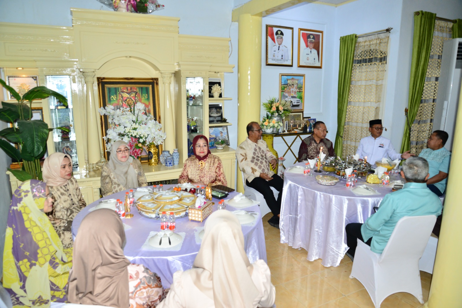 Suasana lebaran terasa kental dengan suguhan sederhana yang tersaji di meja tamu, mulai dari teh, kopi hingga pisang goreng yang dinikmati bersama. Percakapan santai penuh canda antara Gubernur Gusnar dan Bupati Sofyan mencerminkan kedekatan yang terjalin dalam balutan kekeluargaan.