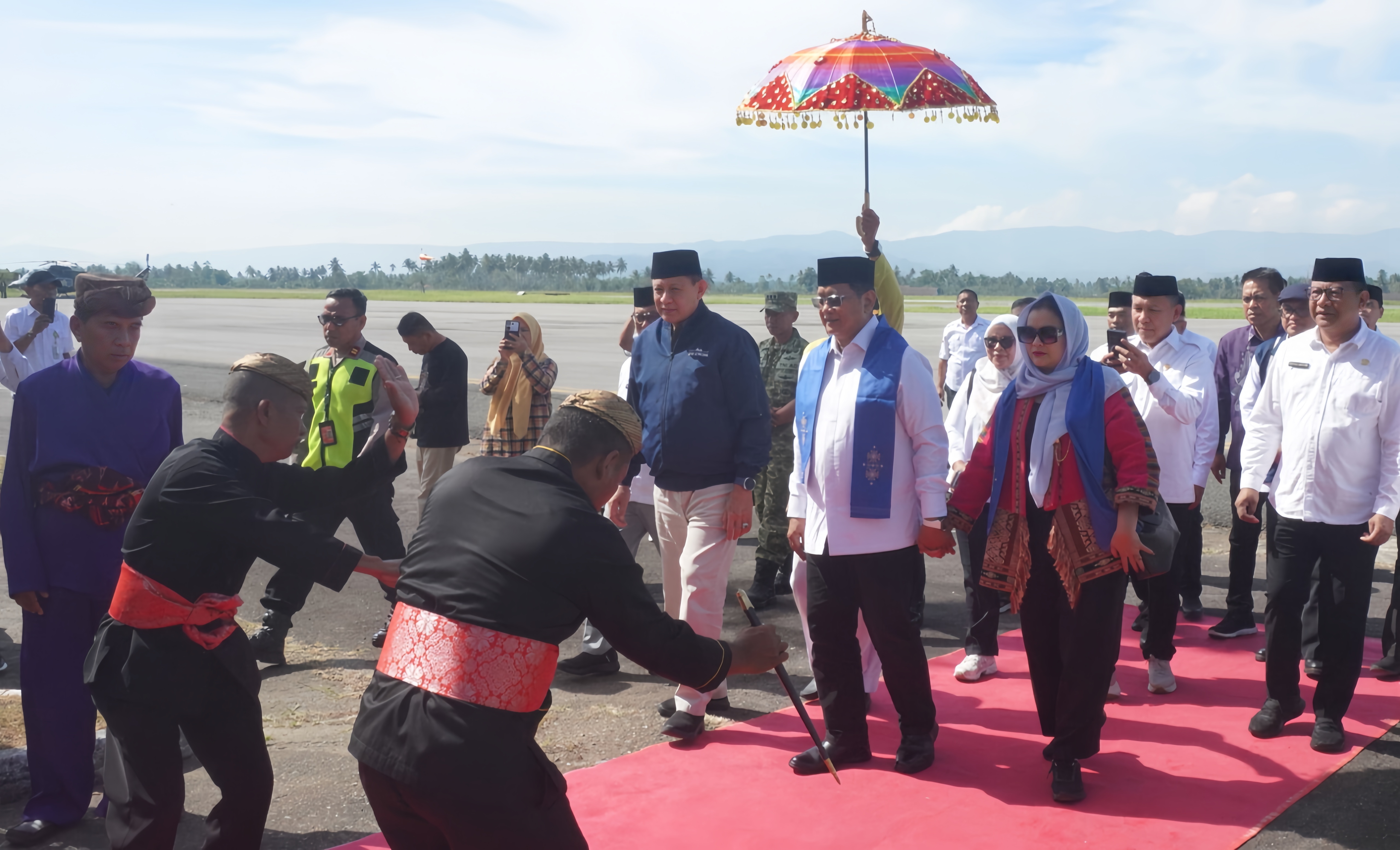Kab. Gorontalo, Kominfotik – Wakil Menteri Transmigrasi (Wamentrans) Viva Yoga Mauladi disambut adat mopotilolo saat tiba di Bandara Djalaluddin Tantu, Gorontalo, Rabu (8/4/2026). Ketadatangan Wamentrans diterima oleh Gubernur Gusnar Ismail di VIP bandara lama.